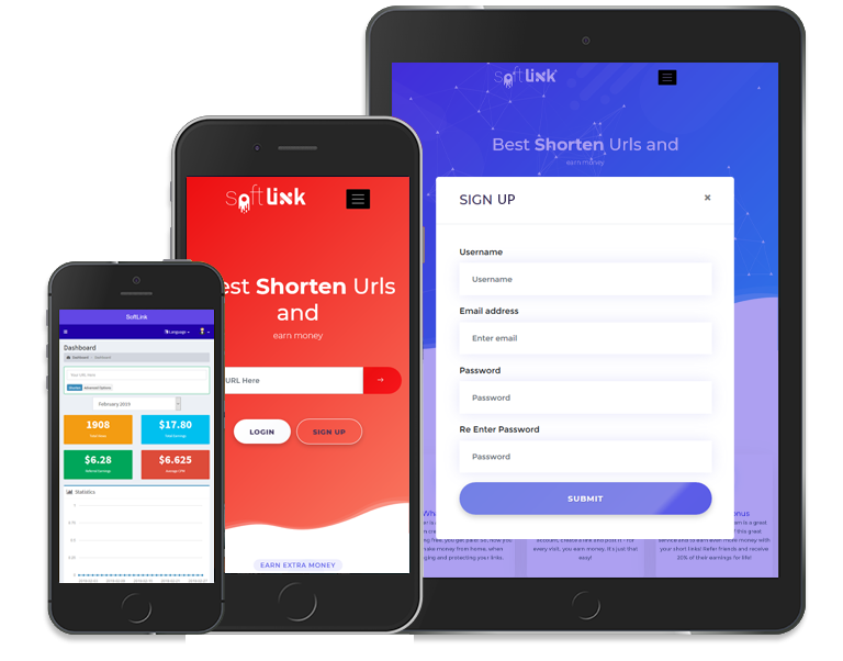 Share your shorten links with your friends, forums or websites and get paid for every click.